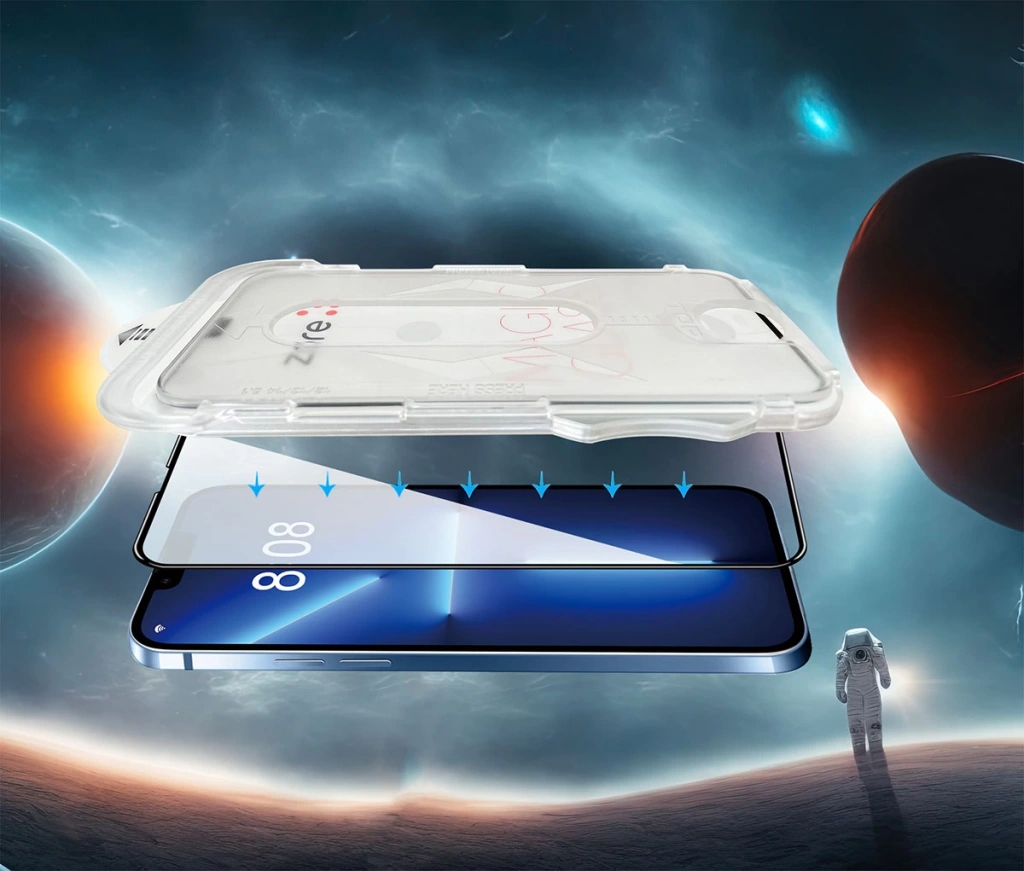 Kutu içeriğinde telefonunuza kolayca uygulamak için ekran koruyucu yerleştirici aparat vardır