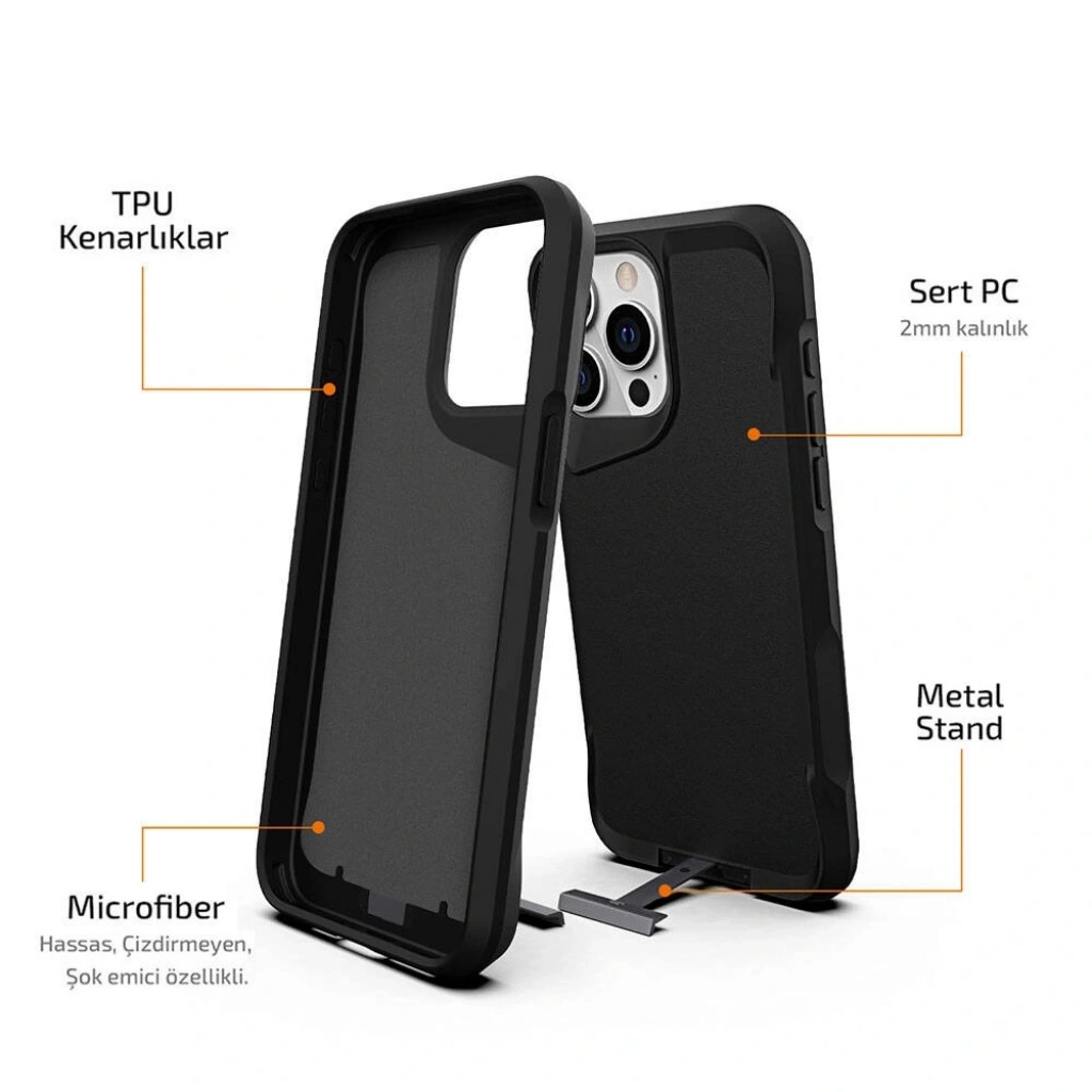 Katlanabilir metal stand özelliği ile Zore T-Max Mat Kapak, telefonunuzuistediğiniz açıda sabitler; böylece eller serbest bir şekilde film izlemenin,video görüşmeleri yapmanın veya tariflerinizi takip etmenin keyfiniçıkarabilirsiniz. Stand, kullanımı kolay ve dayanıklı bir mekanizmaya sahipolup, telefonunuzu yatay veya dikey olarak mükemmel bir izleme açısında tutar.