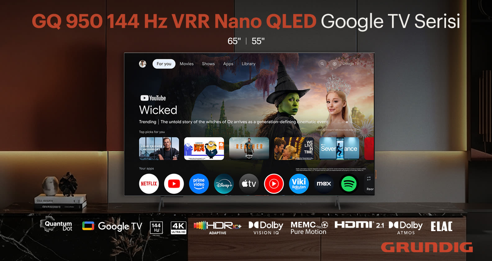 Grundig 65 GQ 950A 65 inç 165 Ekran Uydu Alıcılı Google TV Smart 4K Ultra HD 144 Hz QLED TV